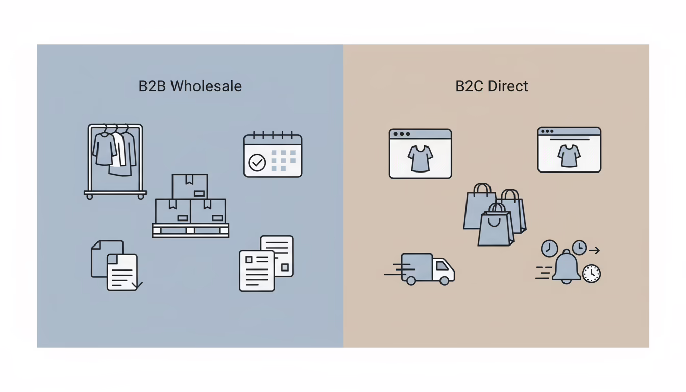 Running a fashion brand means wearing many hats. One minute you’re approving new designs, the next you’re putting out fires because your best-selling item just oversold across three channels at once. If you’re managing both B2B wholesale accounts and direct-to-consumer sales, you already know the struggle. A boutique places a bulk order while your website sells the same inventory to individual shoppers. By the time you realize what happened, you’re sending apology emails and scrambling to keep everyone happy. The good news? Wholesale inventory management software can eliminate these headaches by giving you real-time visibility across all your sales channels. This guide will walk you through the distinct challenges of B2B versus B2C inventory allocation, practical strategies for optimizing your stock, and the software features that can transform how you manage inventory.